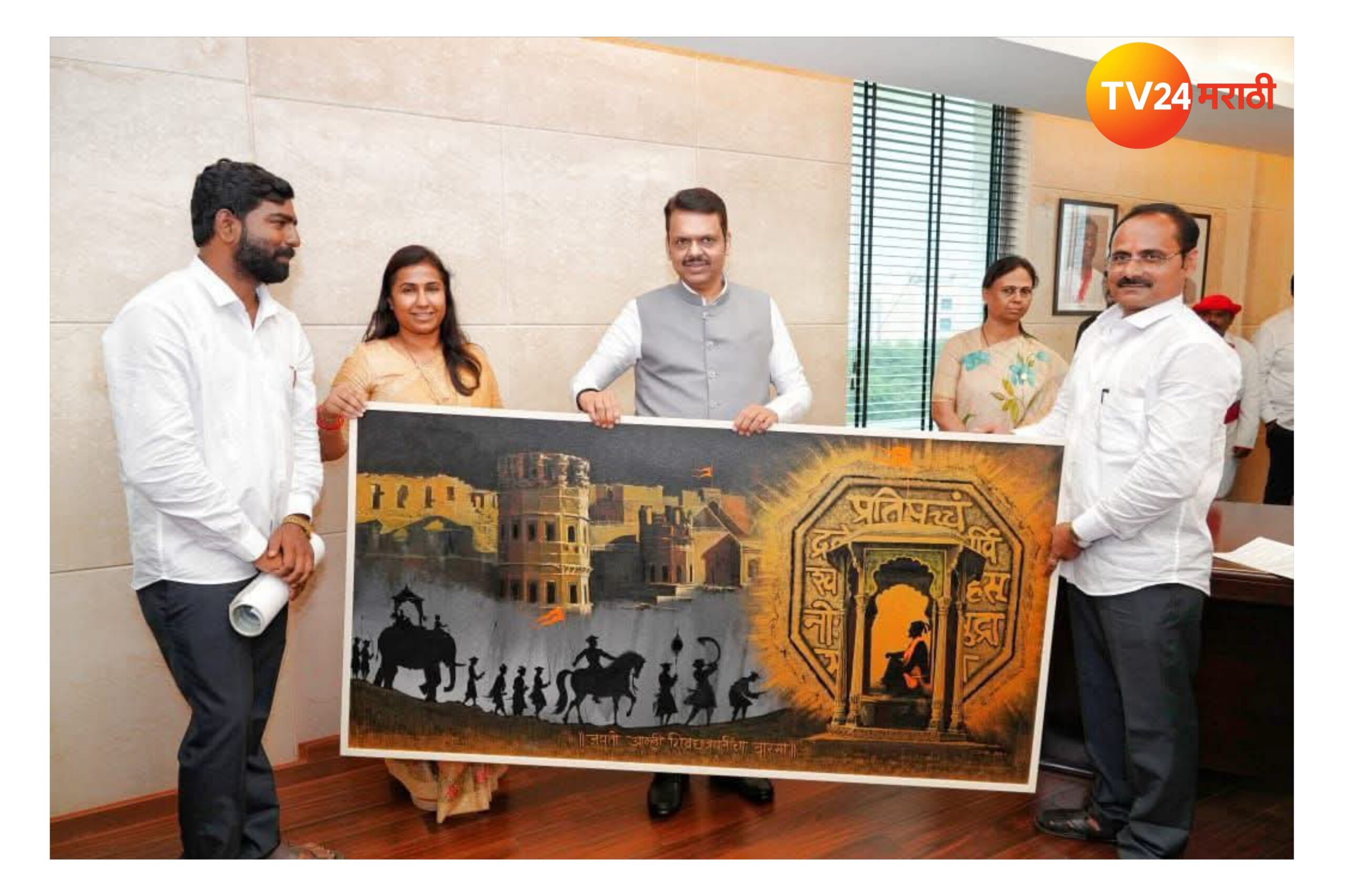 9 जुलै रोजी झालेल्या मंत्रिमंडळ बैठकीनंतर, परभणीच्या पालकमंत्री सौ. मेघना साकोरे-बोर्डीकर यांच्या पुढाकाराने हे पेंटिंग मुख्यमंत्री देवेंद्र फडणवीस यांना भेट म्हणून प्रदान करण्यात आले. या वेळी मंत्री गिरीश महाजन, मंत्री अतुल सावे, आ. मोनिकाताई राजळे, आ. सिमाताई हिरे, आ. सुरेश धस, खासदार रणजित नाईक निंबाळकर आदी मान्यवर उपस्थित होते.