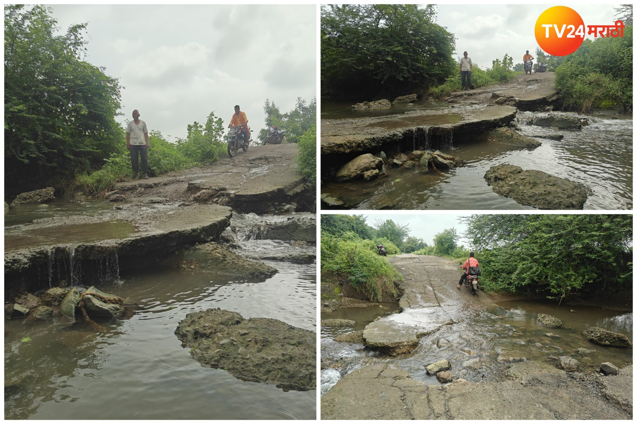 डिग्रस ते सावळी तांडा रस्त्याची दुरावस्था पुलावरुन मोटरसायकल नेने पण झाले अवघड